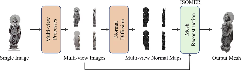 A new framework aims to change that. By adapting Stable Diffusion to generate consistent orthographic views and fine-tuning it with a curated dataset of 672 Buddhist sculptures, researchers have created a system capable of producing high-resolution multi-view images. These are then processed through a two-stage upscaling pipeline using ControlNet and Real-ESRGAN.