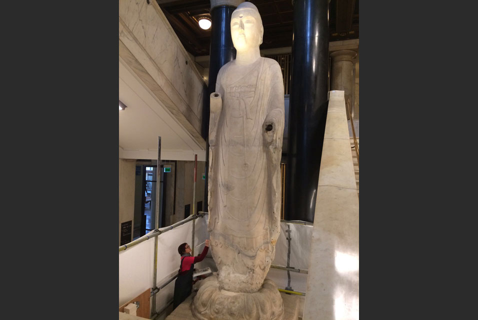 Standing nearly six metres tall on a lotus base, the marble statue dates back over 1,400 years and represents Amitābha, the Buddha of Western Paradise. Conservation teams used scaffolding to clean and repair the surface, improve lighting and stabilise the plinth, allowing visitors to see the sculpture in renewed clarity at the museum’s North stairs.
