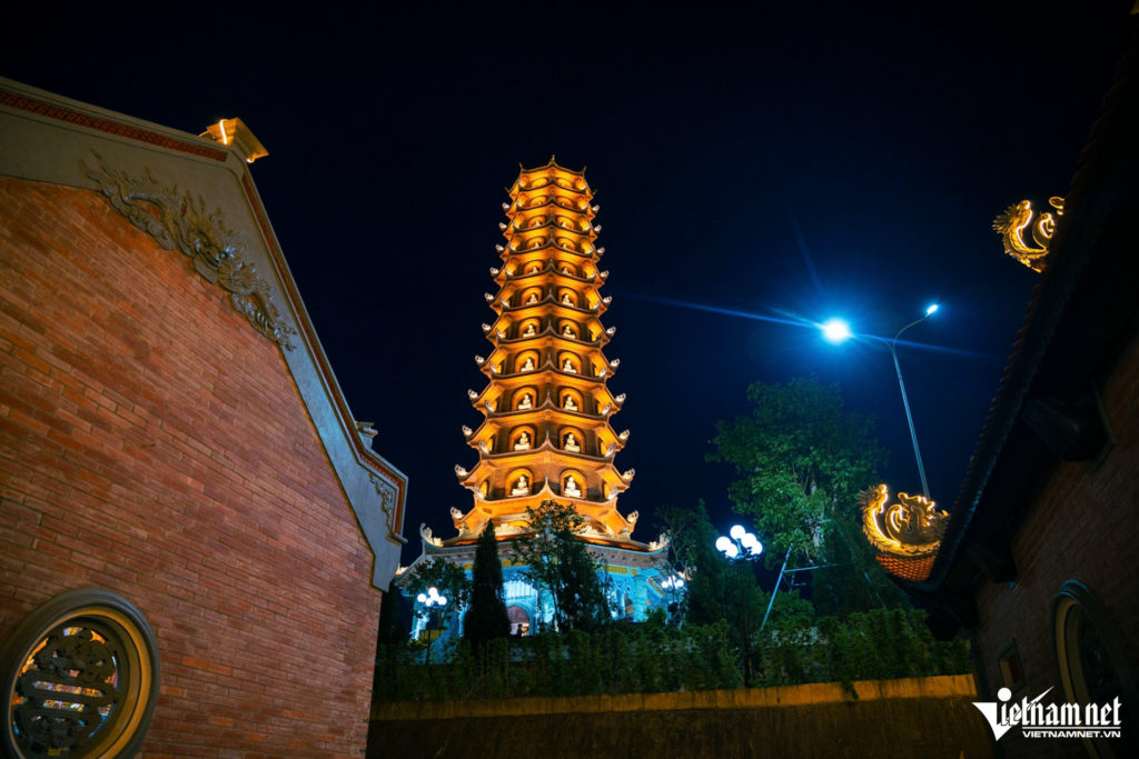 - Night illumination: The stupa glows against the mountain backdrop, creating a mystical sight symbolic of Bac Ninh’s sacred landscape.